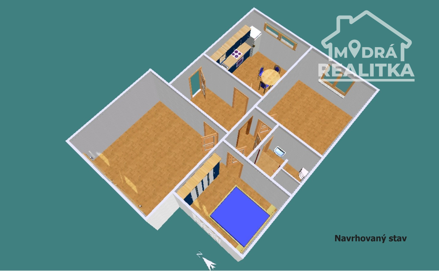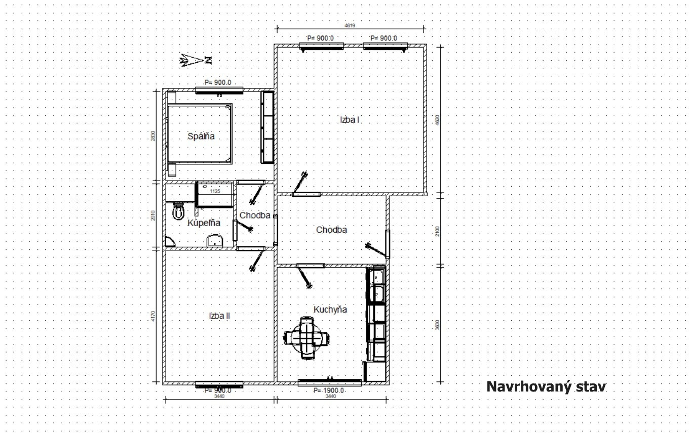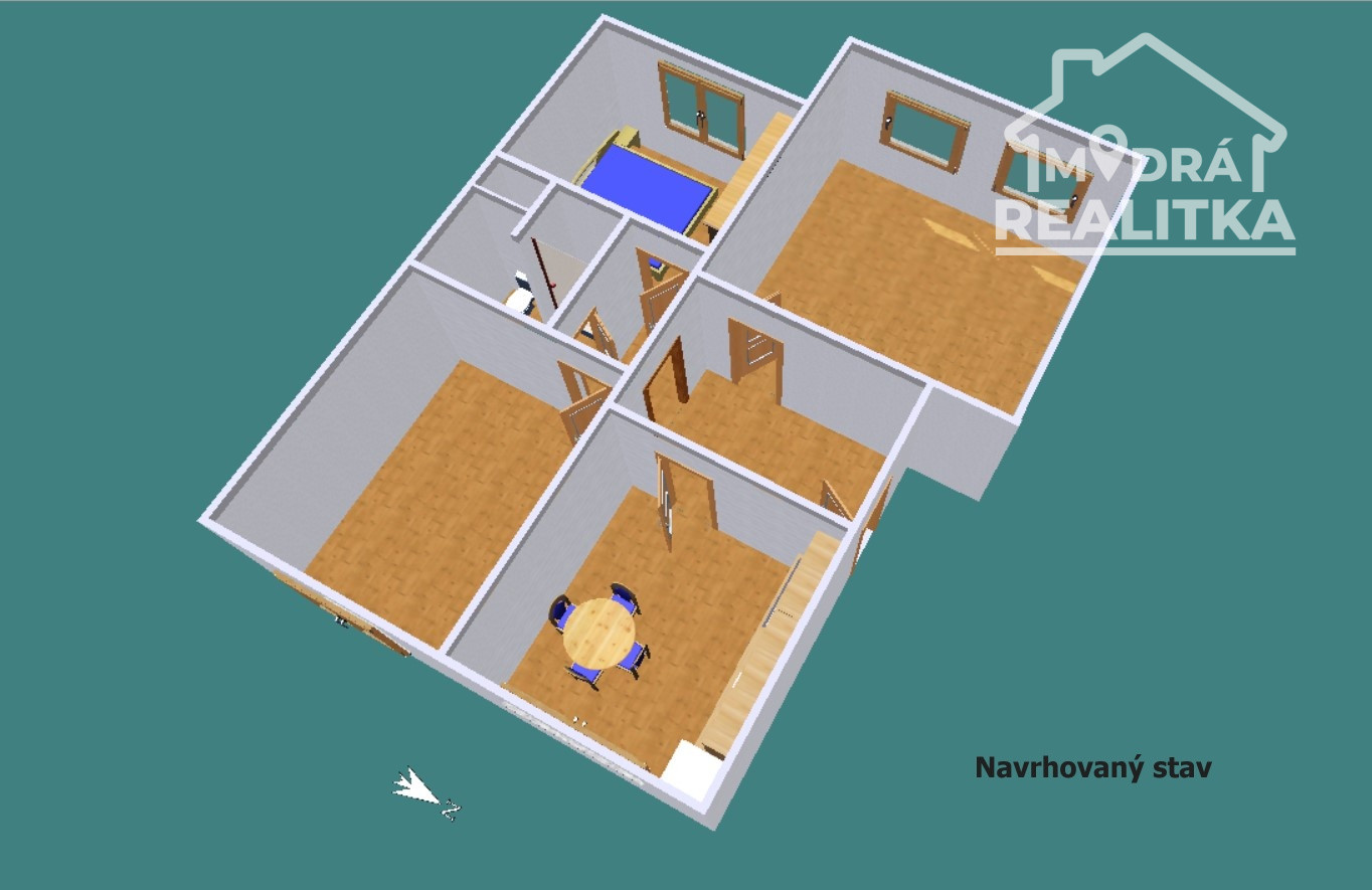 Veľkou výhodou je rozmerná izba (4,62 m x 4,62 m), ktorú je možné jednoducho rozdeliť a získať tak plnohodnotný 3-izbový byt – čo výrazne zvyšuje hodnotu nehnuteľnosti.